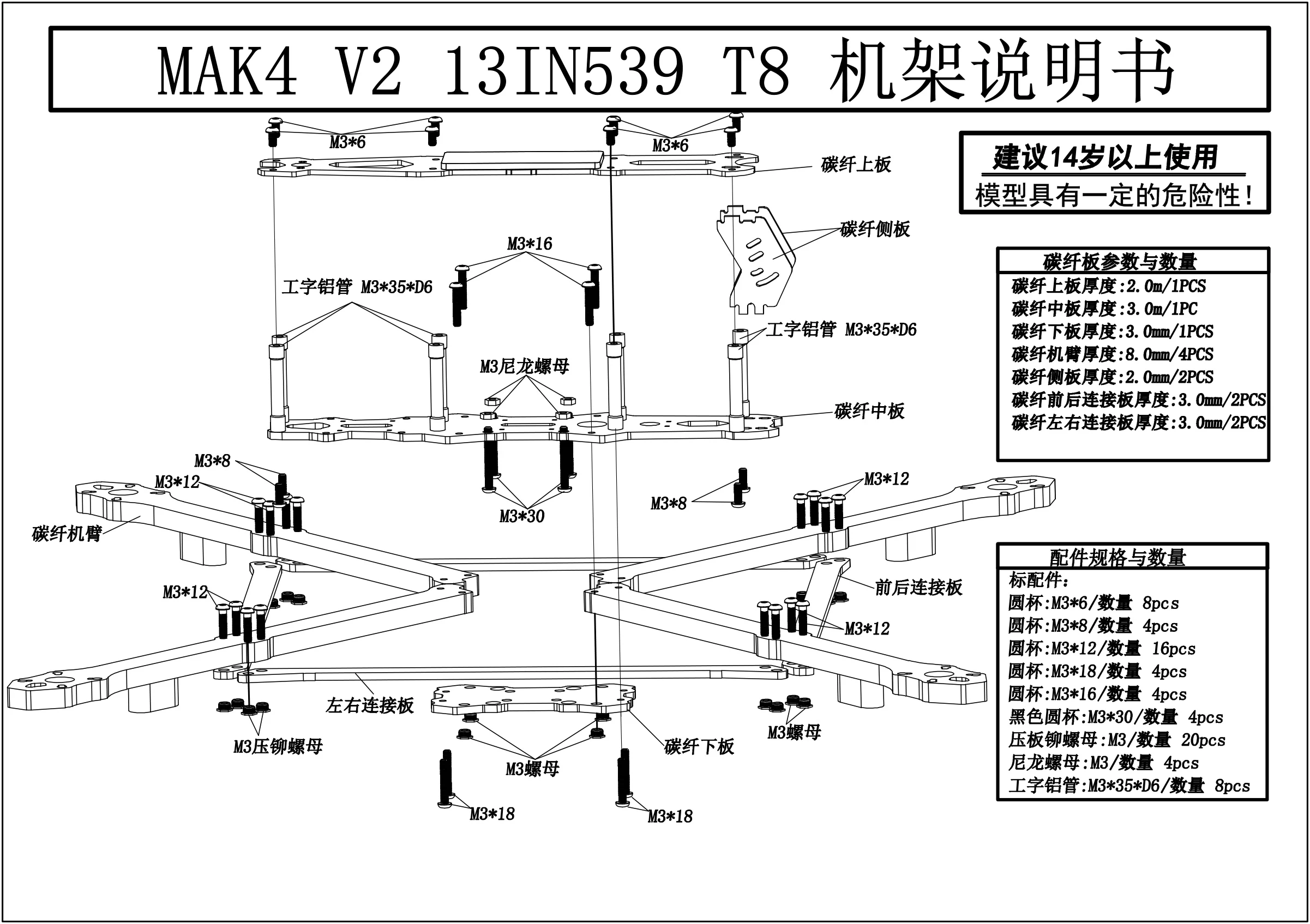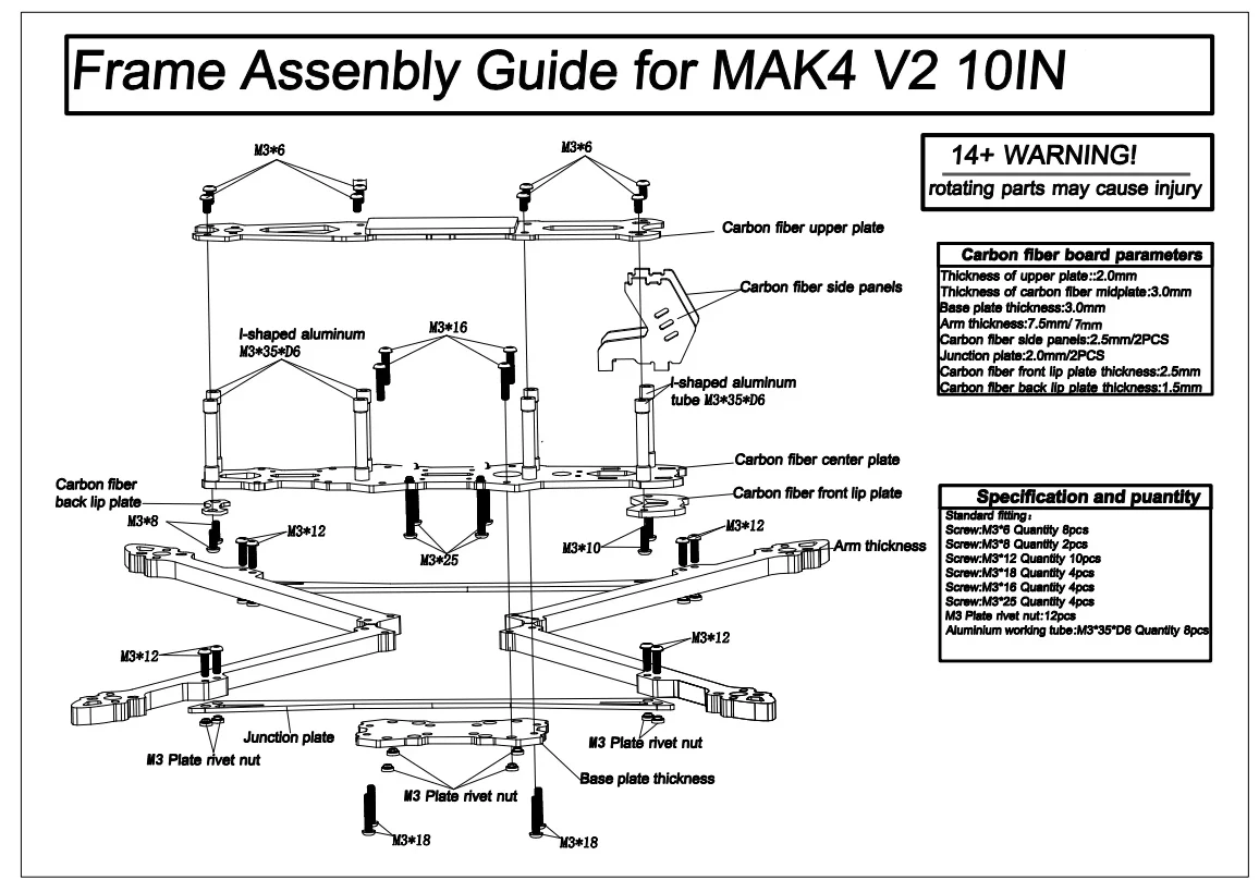 • 1x Mark4 V2 Carbon Fiber Frame Kit (Select size from dropdown)