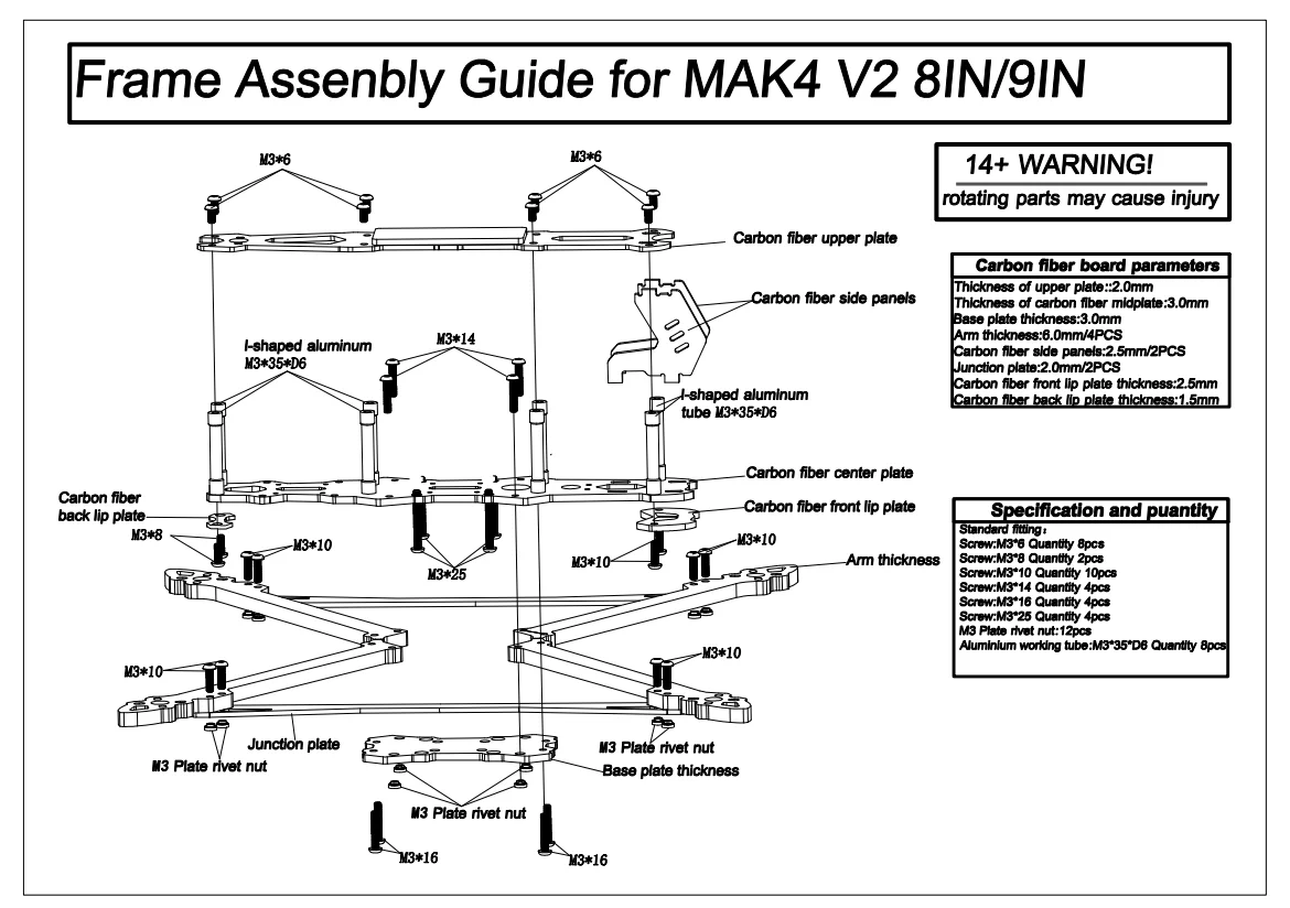 1Set x Mark4 V2 8Inch/9Inch/10Inch Carbon Fiber Frame Kit